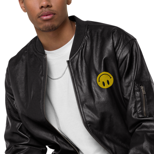 Upside Down Smiley leather bomber jacket (unisex)
